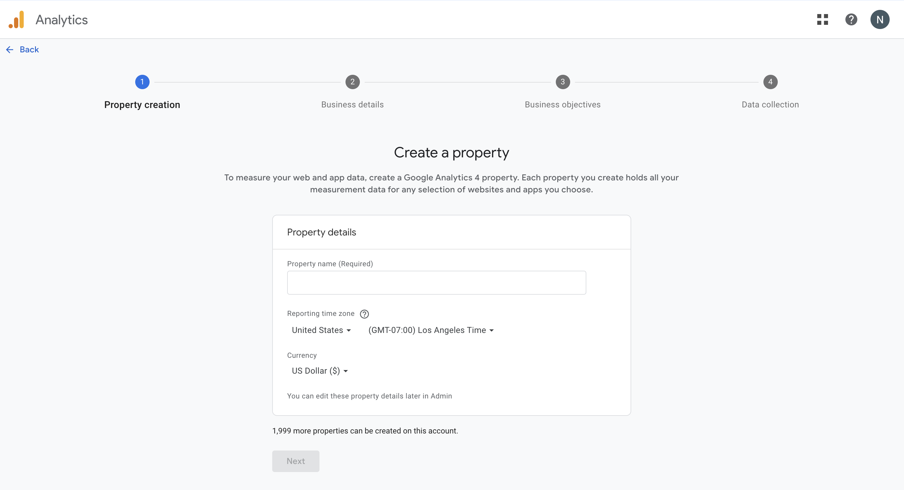 Go to google analytics dashboard, click on create a new property