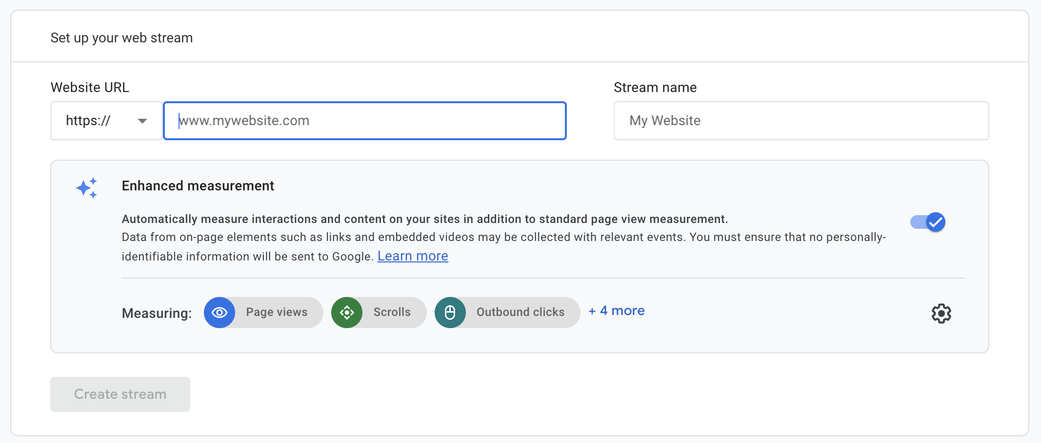 Setup the web stream by entering your site’s url