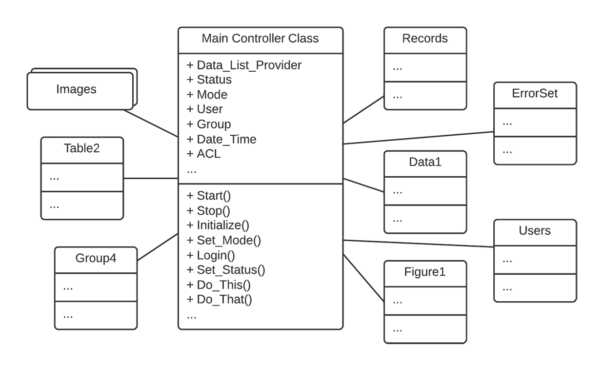 Characterised by a single complex controller class takes care of most of the functionality and surrounded by simple data class