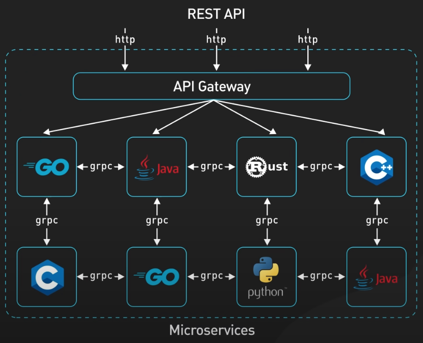 - gRPC requires you to define the structure of the service and the message it exchanges using a special language called protocol buffer IDL (Interface Definition Language) to ensure a standardised way of communication btw the services